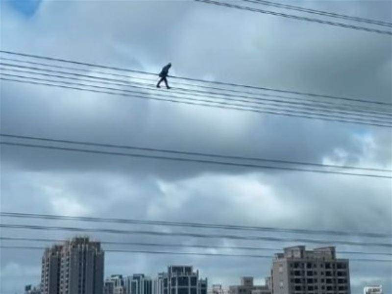 就在美國徒手攀巖傳奇艾力克斯・霍諾德成功征服台北101、引發全台關注之際,國道上也上演了一場不遑多讓的「高空秀」,昨(25日)有民眾駕車行經國道1號南下五楊高架中壢路段時,意外目擊令人屏息的一幕,有位電力維修人員竟在橫跨國道的高壓電纜上行走,跟五楊高架橋的高度整個平行,驚險畫面曝光後立刻在網路上掀起熱烈討論。