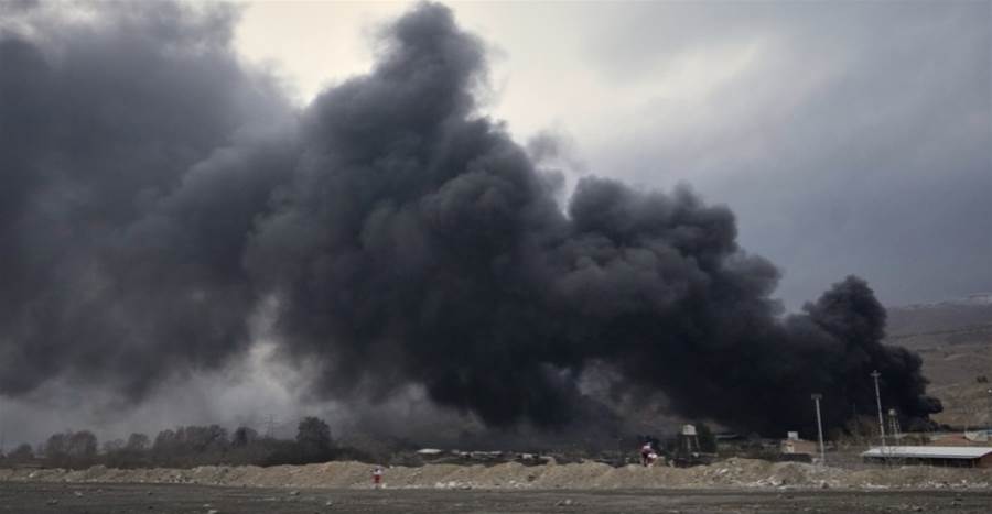 消防部門發布的現場影像顯示,大量火球與濃厚黑煙竄入雲端,消防人員持續阻止火勢蔓延。