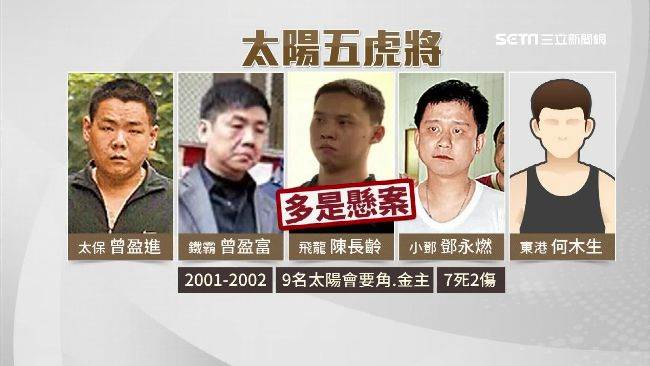 吳桐潭出獄後,太陽會陷入新舊派系之爭,吳桐潭為了鞏固勢力,從太陽會內部挑選10名成員,送往柬埔寨進行專業軍事訓練,而這些人被外界稱呼為「虎牌殺手」,其中「鐵霸」曾盈富為負責人,並同時擔任太陽會捍衛隊隊長,與親弟弟「太保」曾盈進等人合稱為「五虎」,之後還發展出第二代、第三代等。
