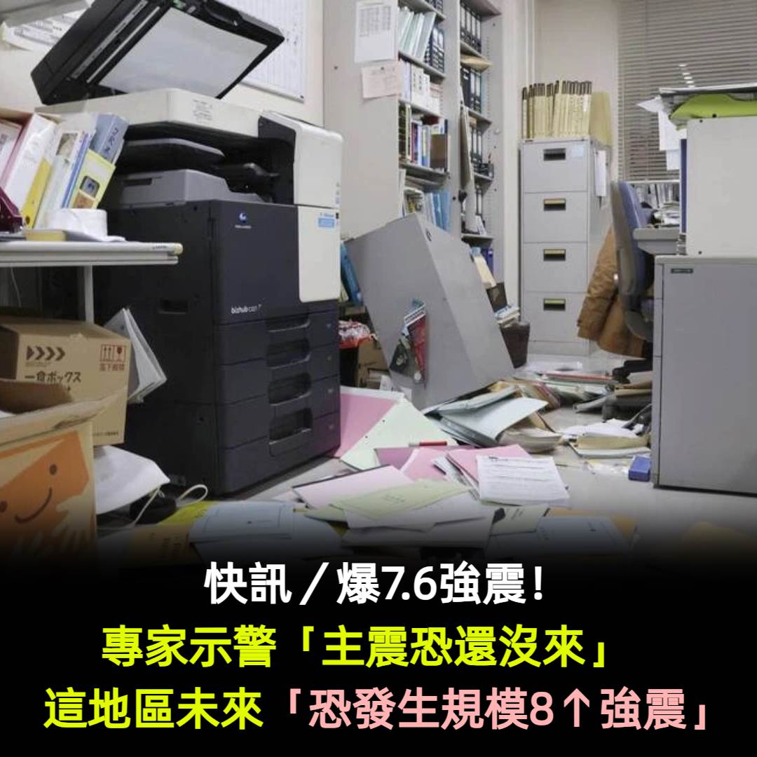 青森縣外海于8日深夜發生規模7.6強烈地震,日本官方于9日凌晨緊急召開記者會,專家指出,這次規模7.6的地震威力相當于125顆原子彈,起因是太平洋板塊隱沒至北美板塊所致,震央位置恰巧在311大地震震央稍北處。他表示,機率提升100倍代表這次地震很可能只是前震,後續恐有規模8強震,但前震轉為主震的機率僅5%,民眾無需過度恐慌。