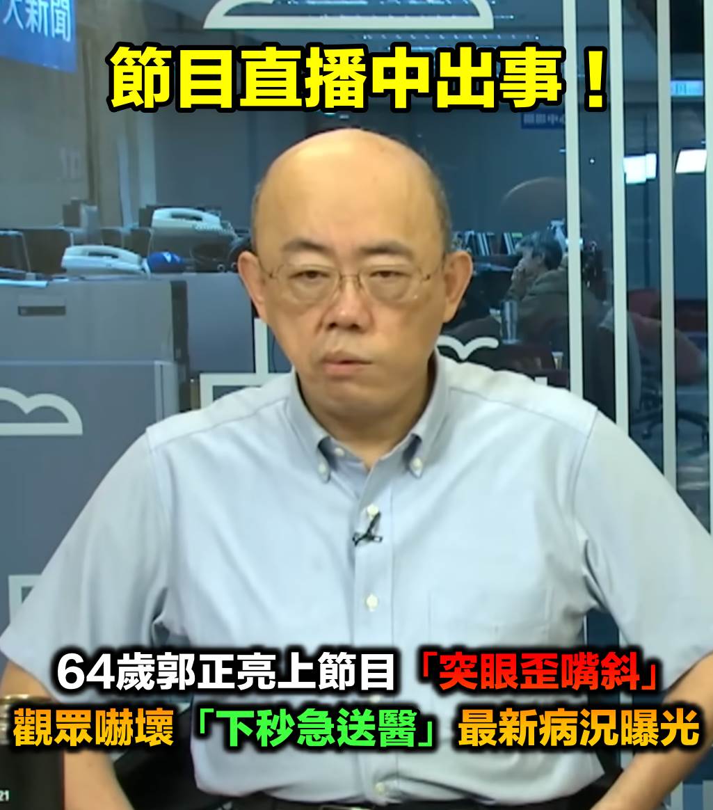 經常在政論節目上發表個人評論的前立委郭正亮,昨(25)日受邀參與中天的直播節目《綠也掀桌》,突然發生身體異狀,被線上多名觀眾發現不對勁,紛紛留言提醒。而事後,他也被證實「健康亮紅燈」,引發熱議。