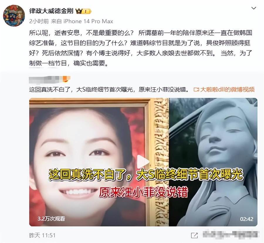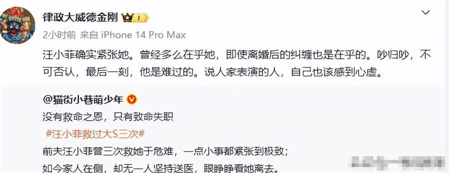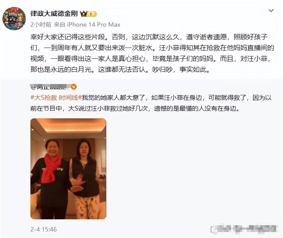 同時呢也讓我們了解到了大s離世的真實原因,原來不只是流感,原本身體就很差,加上泡了溫泉更是成了導火索,張蘭律師看不下去,連發三文談論此事,