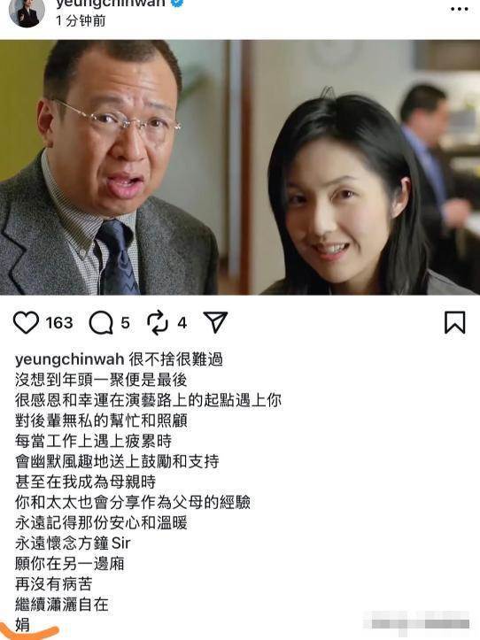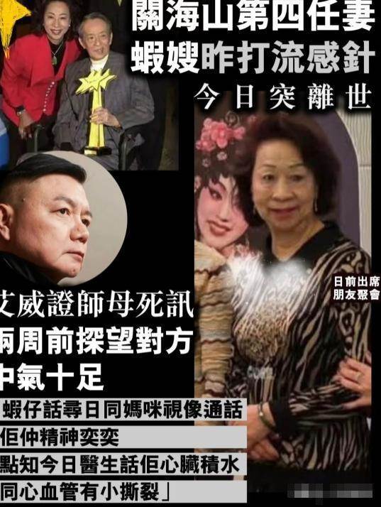 如今第四任妻子突然離世令人震驚,根據另一位演員艾威透露,前段時間對方還去看了師母,當時整個的狀態還很好,一點看不出什麼異樣,