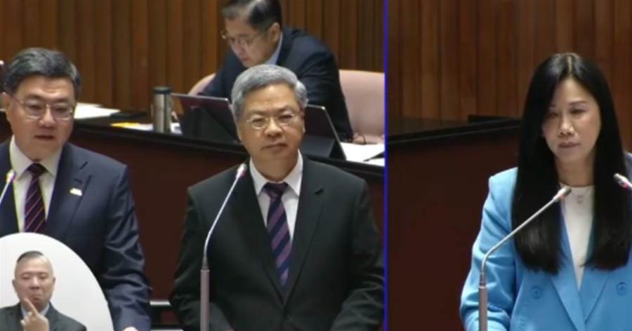 行政院長卓榮泰(左)、經濟部長龔明鑫(中)、國民黨立委萬美玲(右)。(中天新聞)