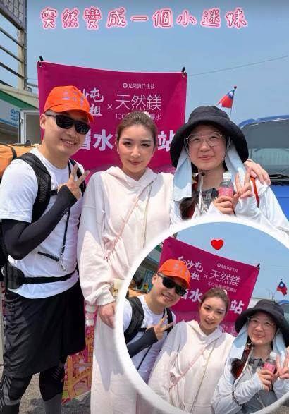 從民眾PO出的照片,可以看見許維恩穿著一身淡粉色休閒運動服、紮起俐落馬尾,頂著烈日親自將白沙屯媽祖聯名的結緣水一瓶瓶地給路過的香燈腳們。
