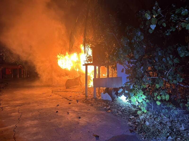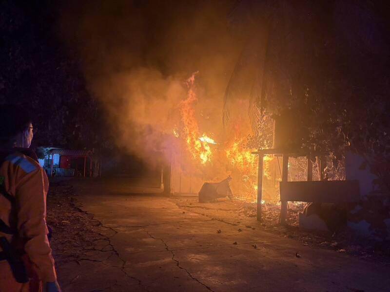 最後火勢順利被撲滅,現場無人傷亡,但小屋已被燒光,現場還有一輛電動機車被燒毀,地上則殘留大量燃放過的鞭炮,警方、消防局火調科目前持續調查火災是否為亂放鞭炮導致。