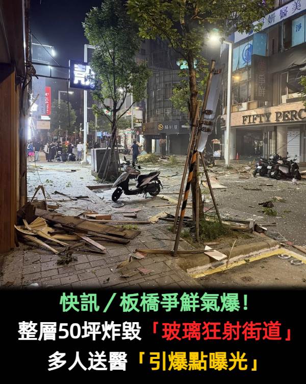 新北市板橋府中商圈今天(8日)凌晨發生驚悚氣爆意外!位于重慶路上的知名餐廳突然發生爆炸,強大威力將2樓整層炸得面目全非,招牌、玻璃及裝潢碎片如雨般噴灑到街道上,現場宛如災難片場景。這起意外造成多人受傷,目前狀況曝光。