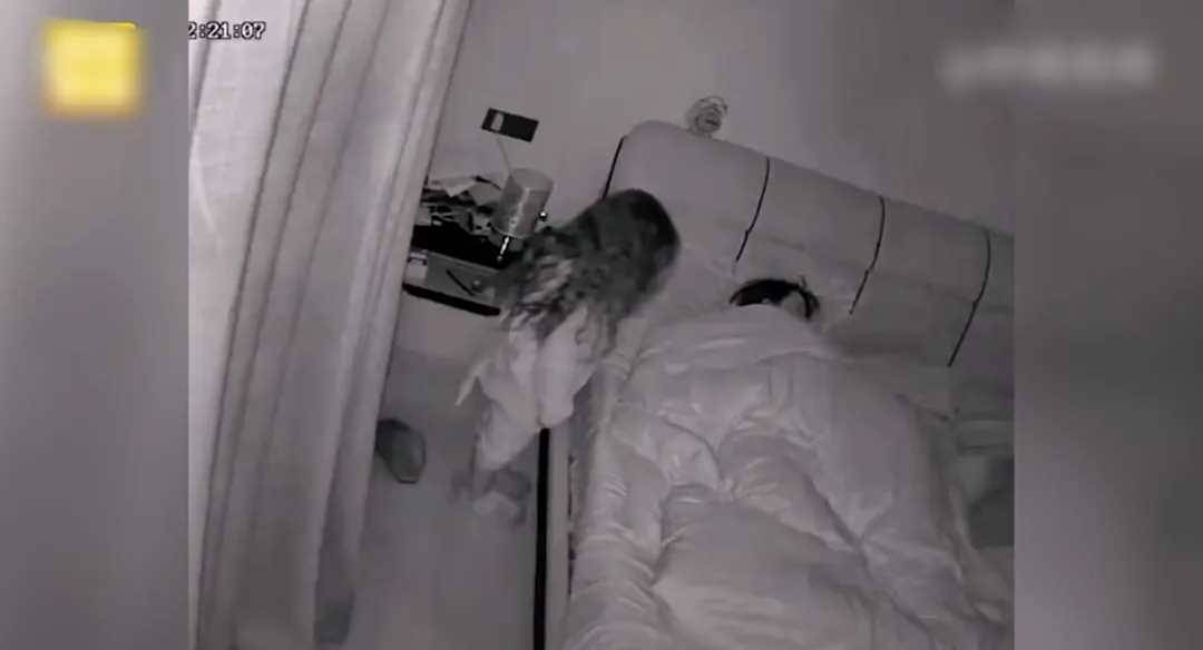 最近幾天,女子晚上睡覺總睡不安穩,睡到半夜時總感覺床邊有人,于是女子想查個究竟。