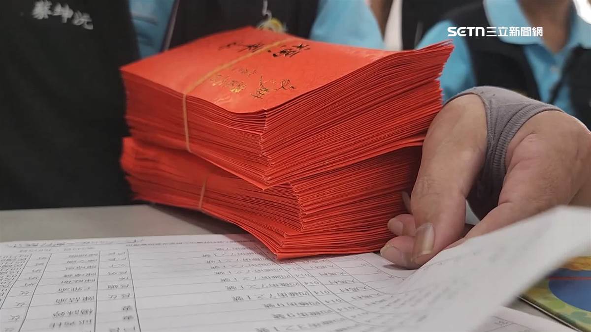 好多人家中什麼都沒了,這是來自嘉義市文財殿準備的1千314萬元,分裝成6千600元一袋,還因為要在連假期間先分裝好紅包,領出的1千314萬鉅款裝好後請當地派出所監管護鈔。不過也有部分民眾反映自己家在重災區,卻沒有被造冊領不到錢。