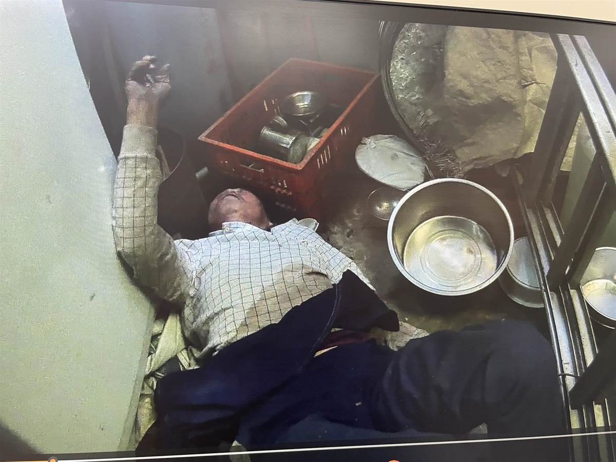 阿公受困地下室畫面。(圖/中天新聞)