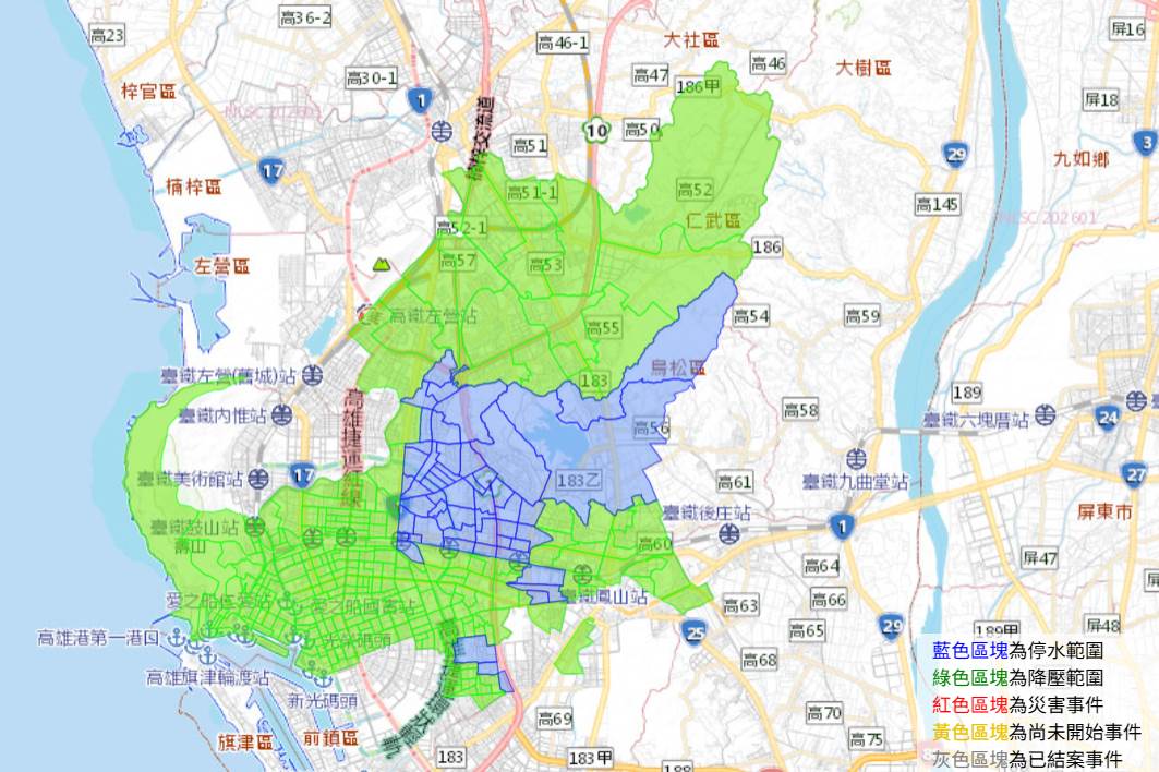 降壓范圍:三民區(精華里、德行里、民享里、達仁里、德智里、同德里、達勇里、德仁里、港新里、港東里、立業里、立誠里、安宜里、安泰里、十美里、德北里、十全里、德西里、鳳北里、鳳南里、博愛里、港西里、長明里、川東里、豐裕里、千北里、立德里、千歲里、力行里、德東里、安生里、鼎泰里、安和里、安東里、達明里、達德里、灣興里、興德里、建東里、千秋里、裕民里、安邦里)