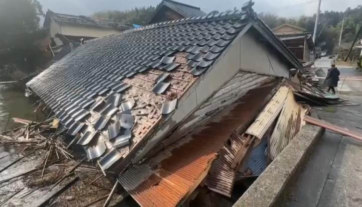 2024年1月1日日本石川縣能登半島發生規模7.6強震,在當時造成多人傷亡。(圖/東森新聞)