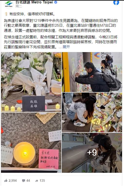 台北捷運19日發生重大無差別攻擊事件,引發社會對公共運輸安全的高度關注。北捷表示,為維護捷運系統安全與乘車秩序,並兼顧多數旅客權益,即日起增訂「旅客進站裝扮應行注意事項」。