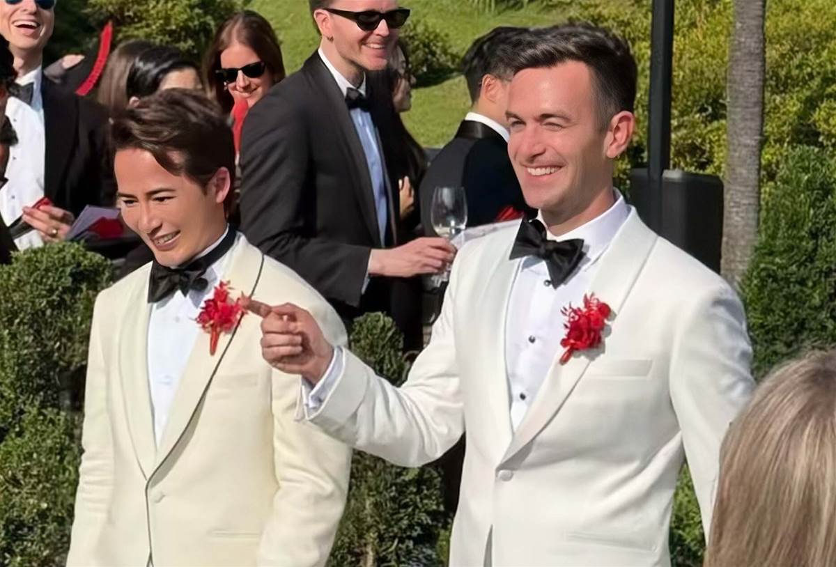作為當天的主角,鐘利華和同性.愛人,都身穿經典的白色西裝、黑色西褲,頭髮用發蠟打理得一絲不茍。