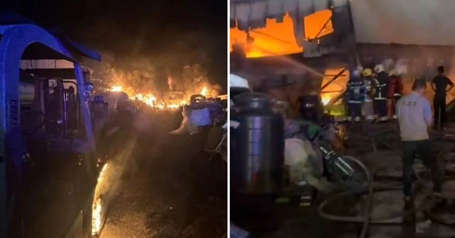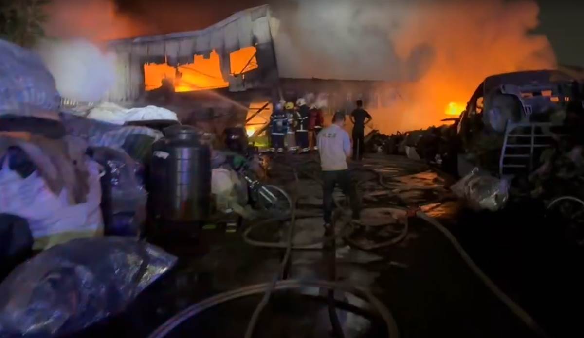 臺南市仁德區一處廢五金回收工廠于今(23)日晚間發生嚴重火警。(圖/翻攝畫面,下同)