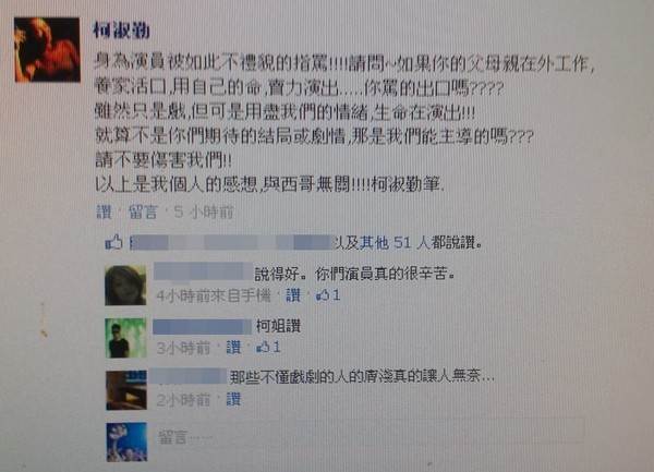 然而驚傳遭網友用「去死一死」、「演技這麼爛」等惡毒言詞辱罵,不只讓柯淑勤看不下去出聲勸導,連阿西的大女兒兼經紀人陳瓊雯也不捨爸爸被如此對待,一度考慮提告這些口出惡言的網友。