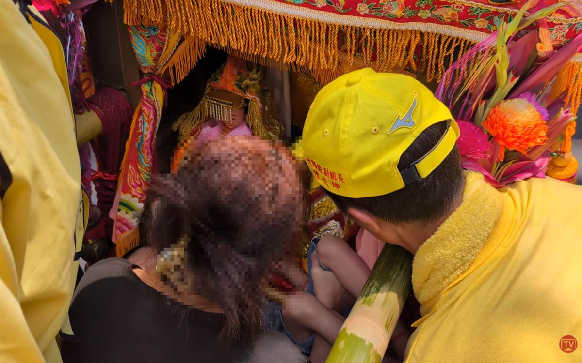 白沙屯媽祖徒步進香隊伍啟程,14日上午11時許經過大肚橋進入彰化縣,途經省道中山路,已有信眾跪地等待「鑽轎腳」,此時1位婦人抱著疑似癱瘓的年幼兒子也跪在隊伍中,哭泣大喊「求求媽祖救救我的兒子」!