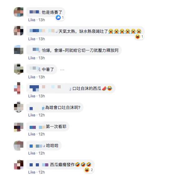 這一奇怪現象迅速吸引了大批網友圍觀,不少人紛紛留言調侃:「西瓜喝醉了」、「天太熱,中暑了」、「可能在車上晃暈了,才吐成這樣」。有些網友更發揮想象力,稱西瓜被「拍打」過度才導致這一情況。