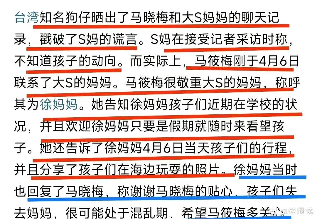狗仔葛斯齊也曬出馬筱梅和s媽的聊天記錄,可以看出馬筱梅經常會和s媽分享孩子的狀況,還發孩子玩耍的視訊!s媽卻說完全不知道孩子的動向,實在是太假了!