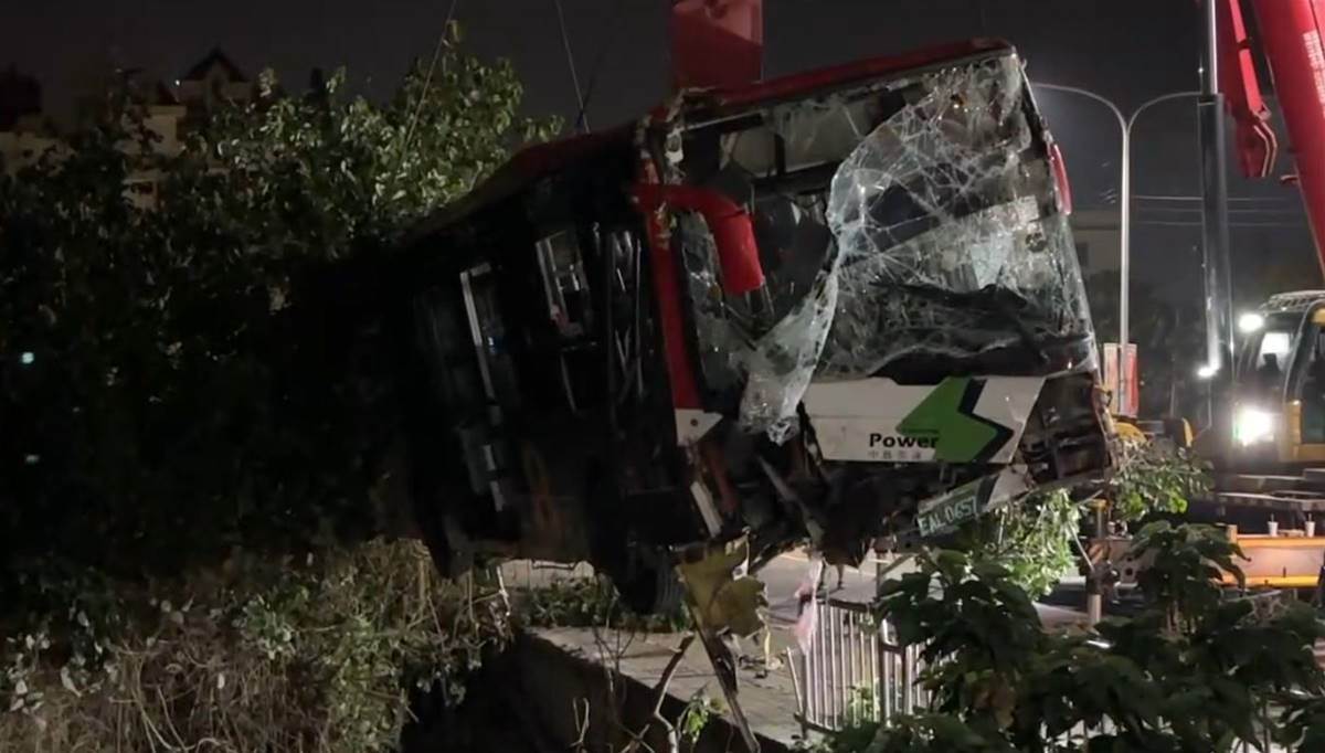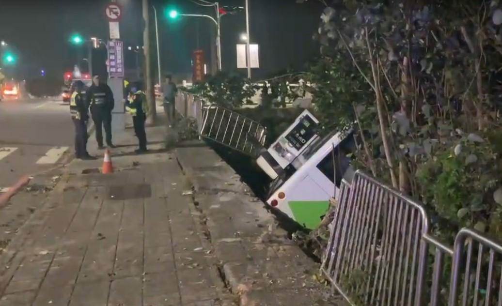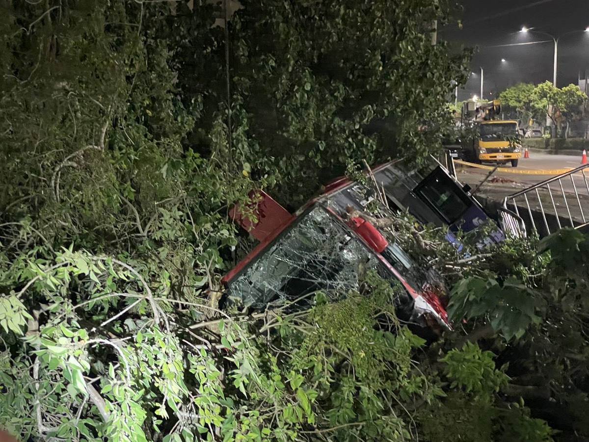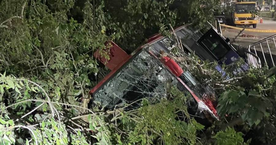 臺中龍井區27日深夜,中鹿客運617路公車行經鷺山橋時失控衝破護欄,滑落邊坡側翻卡樹林間。10米長樹枝穿透車窗刺入車廂,枝葉散落座位區,場面驚險。幸車上僅駕駛及一名乘客,兩人及時脫困送醫,無生命危險。