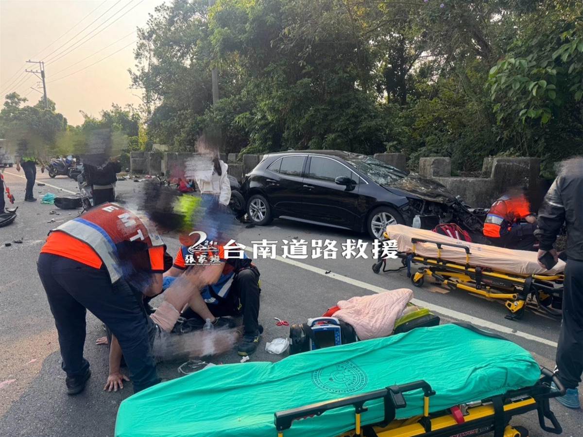 而現場狀況相當慘烈,根據「臺南道路救援張家班」授權提供的畫面,多輛機車、民眾倒地被搶救,35歲男機車騎士已被放上擔架送上救護車,宛如戰場,一位疑似肇事駕駛的年輕女子,呆站在一旁看著,目前警方持續釐清肇事女駕駛是否有毒駕、酒駕、疲勞駕駛等因素釀禍。
