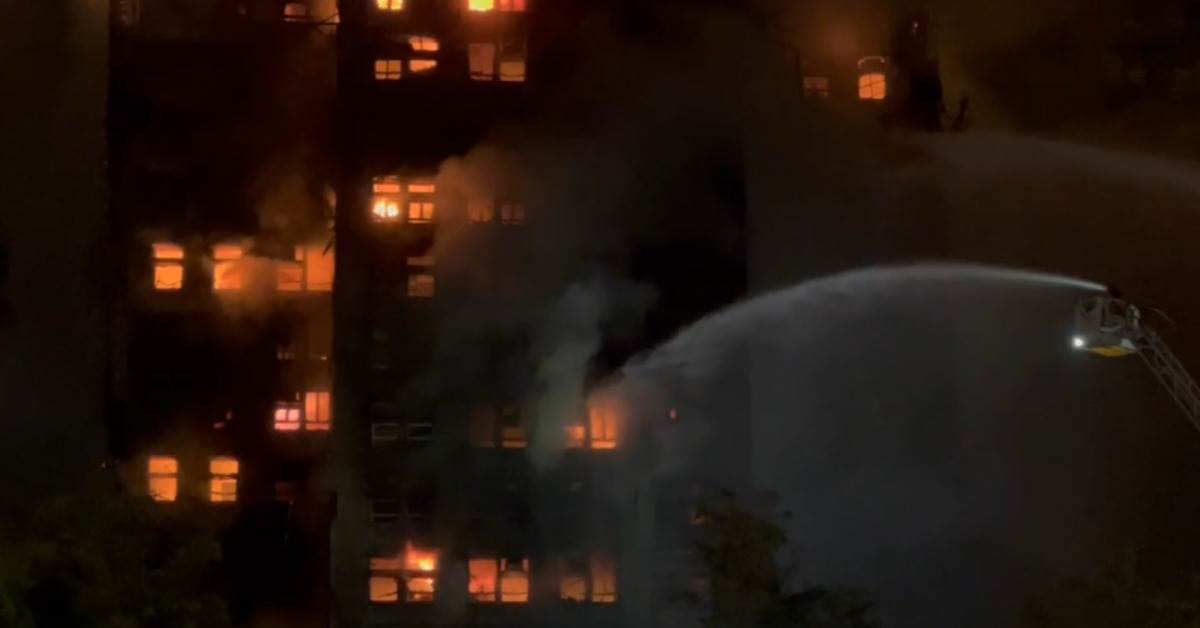 豈料住戶的擔憂竟在一個月後成真,昨日下午疑似有菸蒂引燃鷹架防護網,火勢經鷹架結構迅速蔓延,隨著風勢加劇,燃燒的鷹架碎片飛散,導致其他大樓的鷹架也起火燃燒,並觸發大量住房內部起火,晚間火勢愈燒愈猛,8座大樓中有7座起火,災情瞬間升至最高級別「五級火警」。