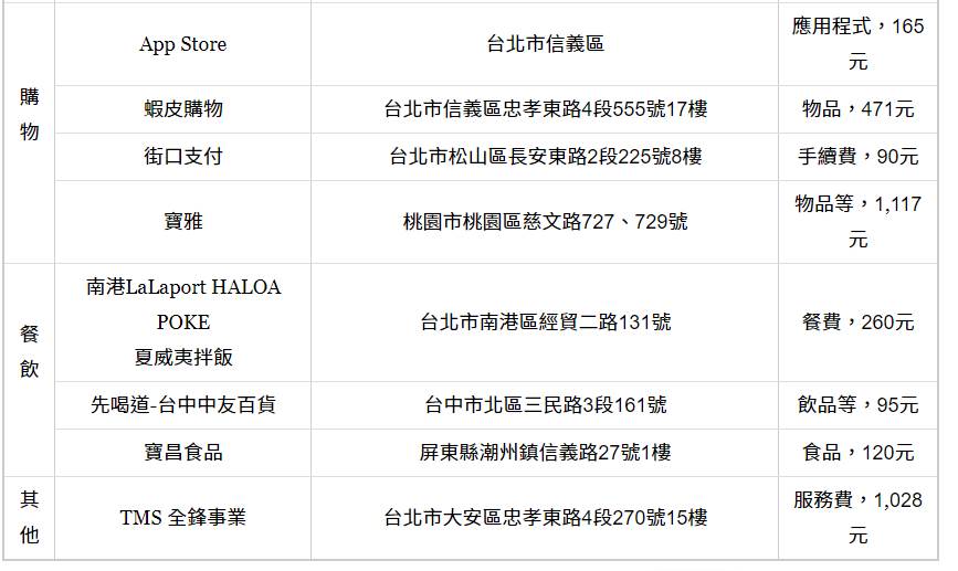 街口支付 台北市松山區長安東路2段225號8樓 手續費,90元
