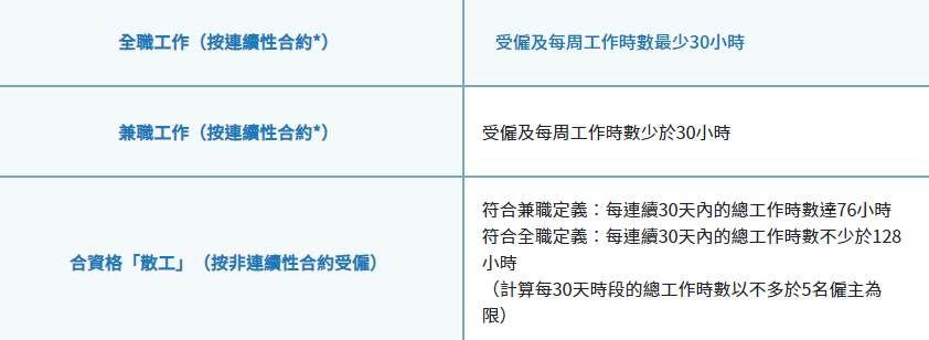 僱員如連續受僱于同一僱主4星期以上,而每星期最少工作18小時。