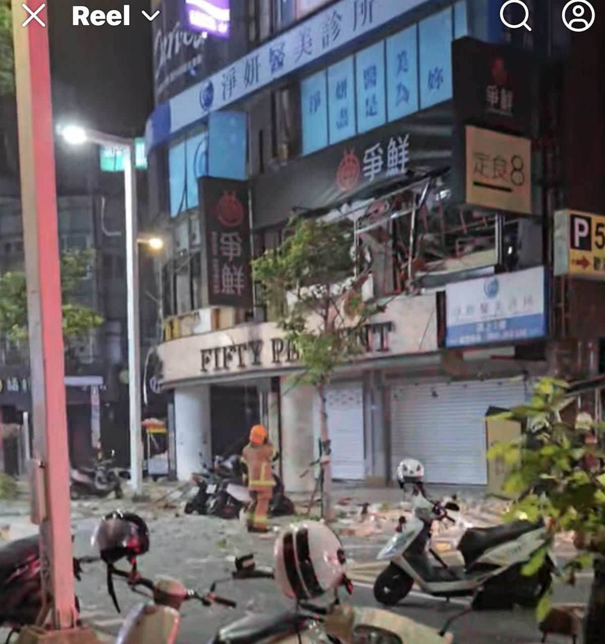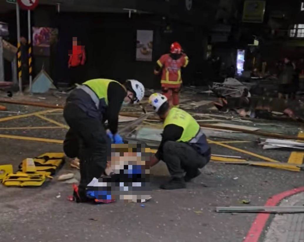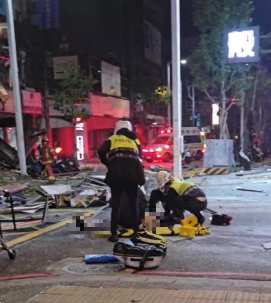 據了解,整起事件發生在凌晨0時許,地點是位于板橋區重慶路的「定食8」餐廳,突然爆炸的劇烈衝擊波將外牆及玻璃震散,殘片更飛濺至一樓騎樓,波及鄰近的爭鮮迴轉壽司。當時路過的女子4人、男子1人遭碎片砸傷,在場還有人慘遭炸出的碎片「擊倒」,躺在地上被緊急救治,現場一時宛如戰場。