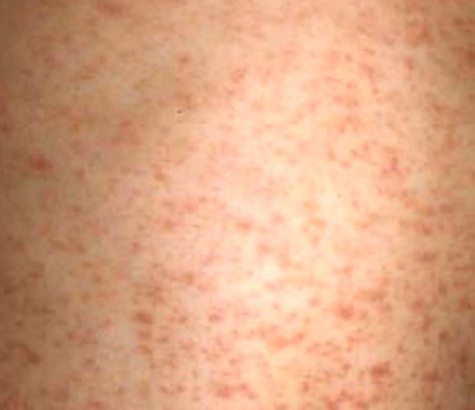 麻疹具有強烈傳染力,可透過空氣及飛沫接觸傳播,患者在出疹前後4天都具有傳染能力。(圖/中天新聞)