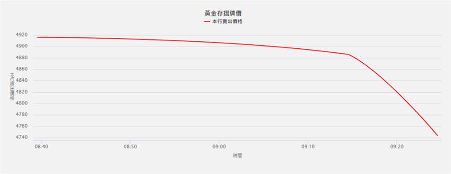 國際金價在上周經歷了自1980年代以來最劇烈的單週跌幅,受此影響,國內黃金價格也隨之重挫。根據台灣銀行最新牌價,黃金存摺今(2)日賣出價已正式跌破5,000元大關,來到每公克新台幣4,744元。