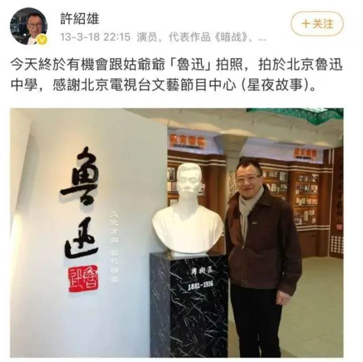 2013年3月18日,許紹雄曾在社交平台上發文:「今天終于有機會跟姑爺爺‘魯迅’拍照,拍于北京魯迅中學。」