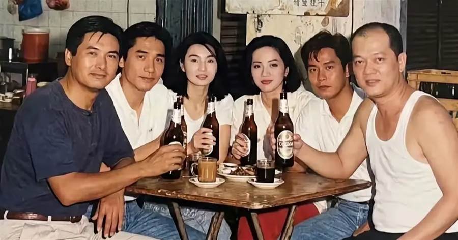 這是一張屬于香港黃金年代的珍貴合影。在「明華海鮮飯店」略顯斑駁的牆面前,六位後來叱吒影壇與歌壇的巨星,此刻正像普通人一樣圍坐一桌,享受著朋友相聚的輕鬆時光。桌上的啤酒,身後的平價選單,無不訴說著那個質樸而充滿生命力的年代。