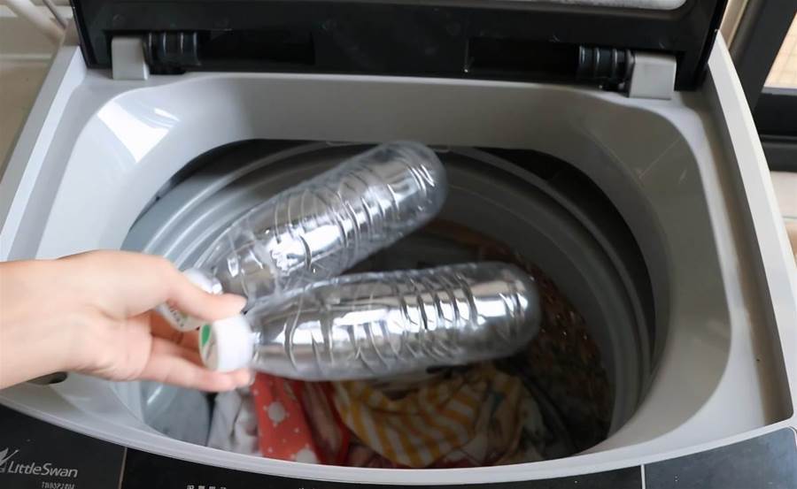 在洗衣機裡面放兩個塑膠瓶可以增大摩擦力,起到防止衣物打結纏繞的作用,而且這樣清洗過的衣服更加乾淨