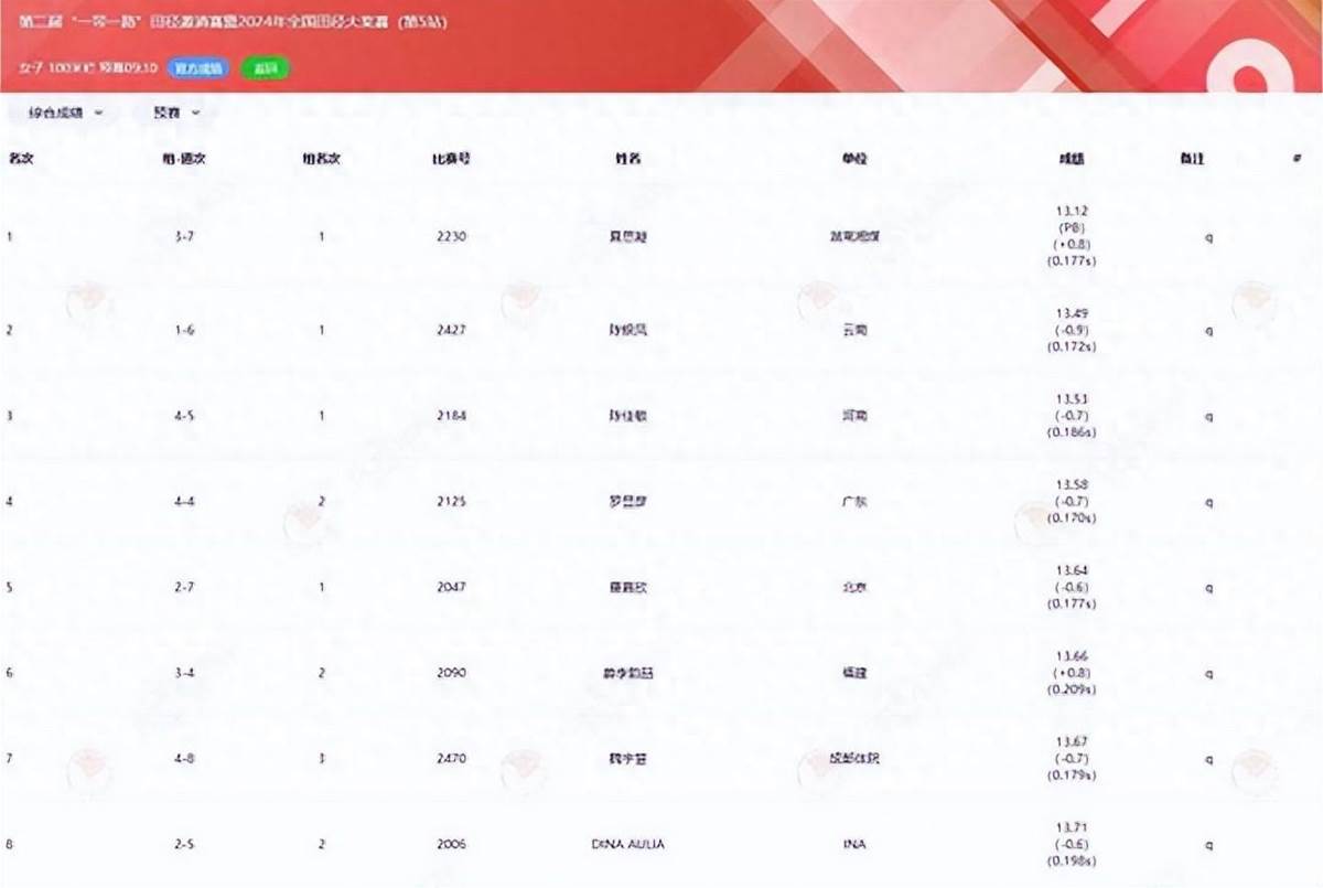 盡管只是預賽,但夏思凝這場發揮夠得上神勇二字。她速度非一般迅猛,十個欄完美跨越,最后拼命沖刺,13秒12!夏思凝打破了自己在2022年創造的13秒14的個人最佳戰績。
