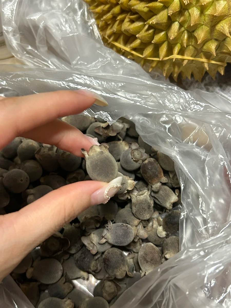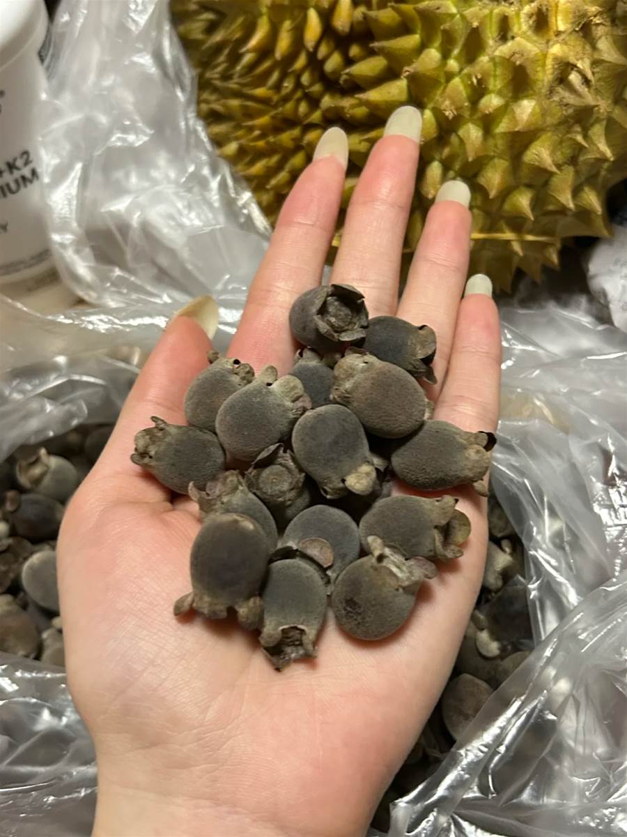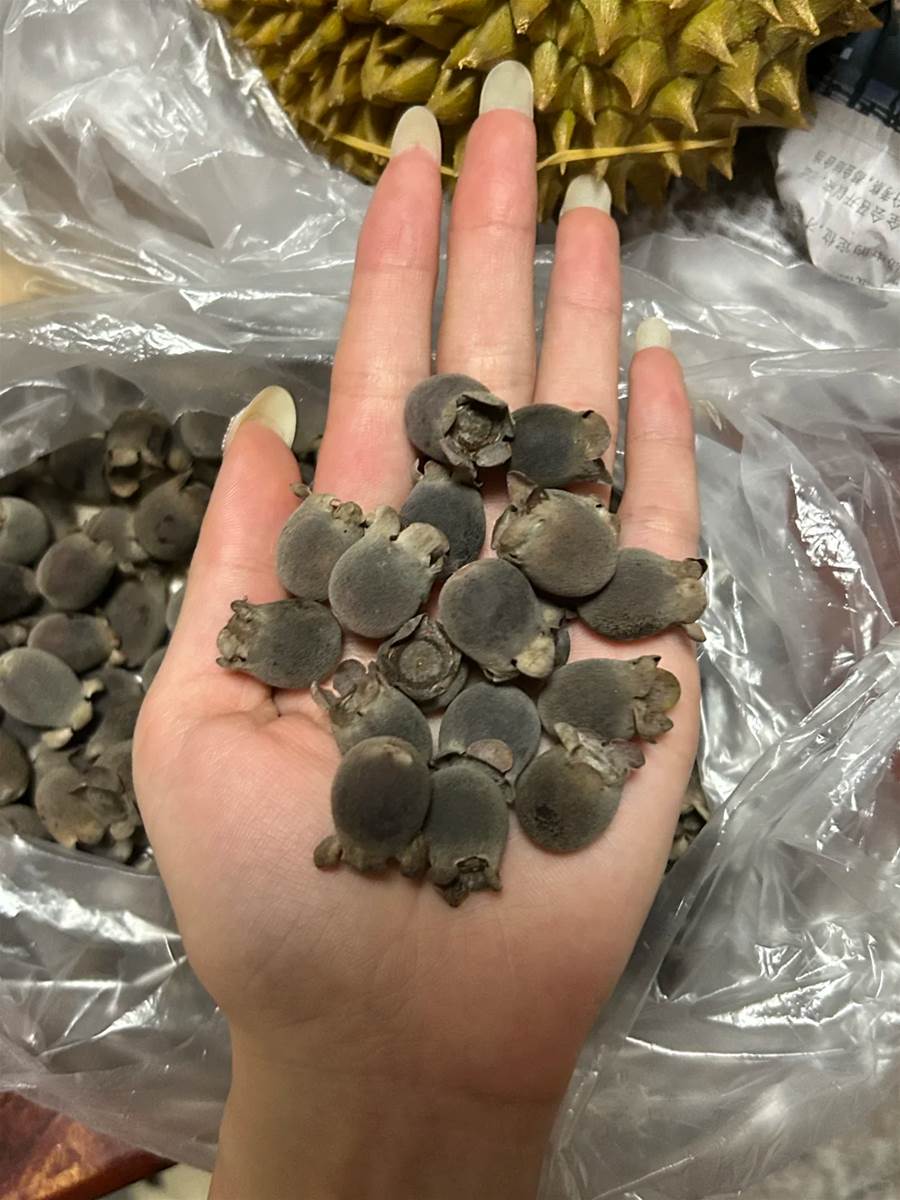 「家人們,誰懂啊!第一次見這玩意兒,有人知道是啥不?」 近日,一位網友在社交平台曬出照片,手掌中捧著十幾顆灰撲撲、狀似迷你柿子的小果子,配文充滿好奇。照片里,果子表皮帶著細密絨毛,背景還能看到榴蓮的尖刺外殼,兩種果實形成的反差感,瞬間勾起眾多網友的好奇心。