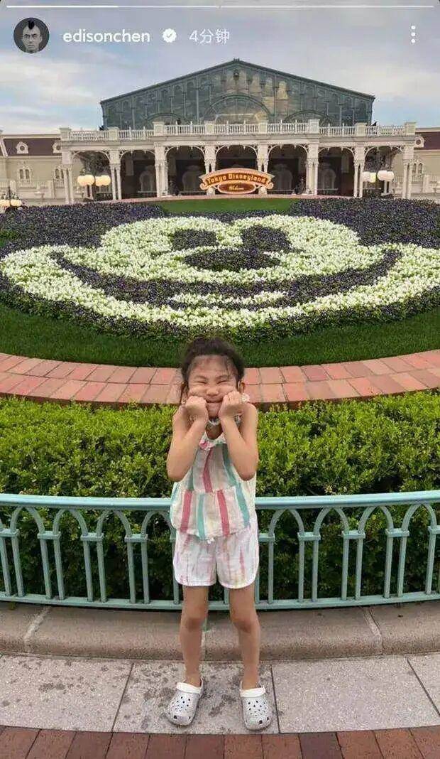 陳冠希在社交賬號,曬出一家人出游迪士尼的照片,女兒在巨大的米老鼠花圃前,雙手握拳托起雙頰,似乎是在模仿身后的米老鼠,網友看后直呼:「太萌了」。