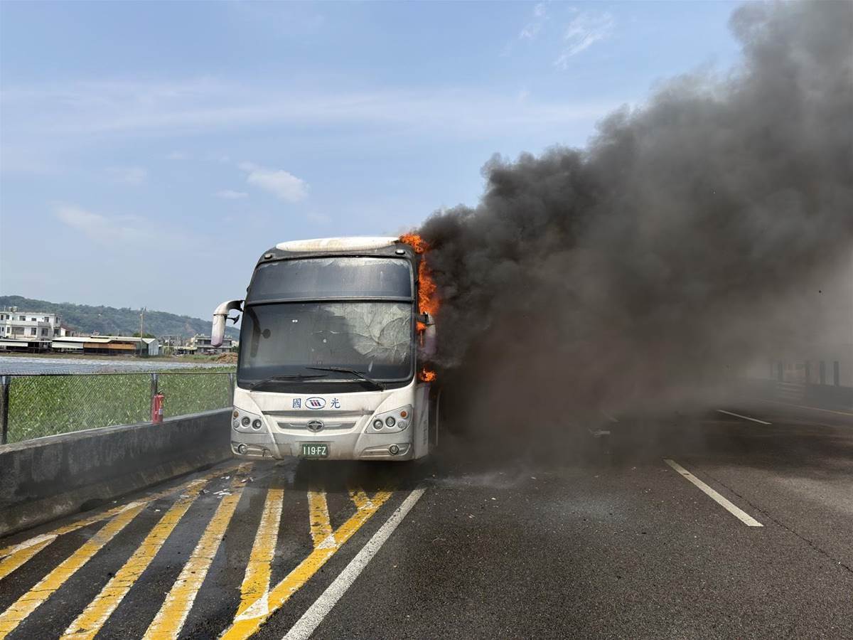 據了解,該輛國光客運是從臺北出發,預計前往臺中火車站的班車。駕駛在行經苗栗路段時,機警聽見車內傳出異常怪聲,立刻將車輛停靠路肩,並在第一時間緊急疏散車上9名乘客。所幸司機與乘客共10人逃生及時,全數平安未受傷。