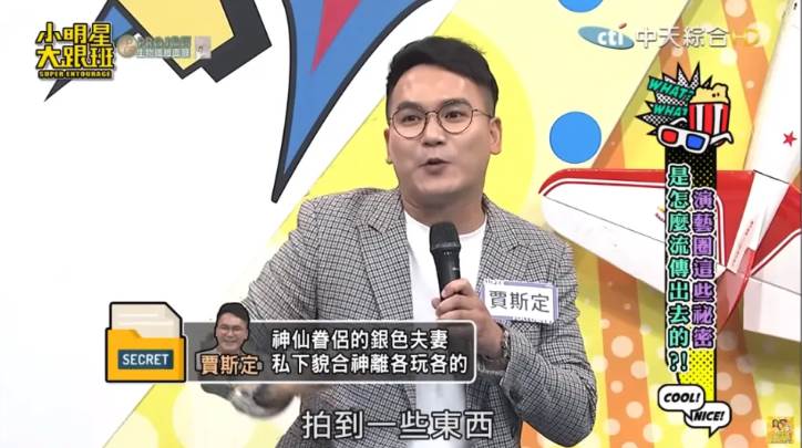 近期演藝圈出軌、離婚事件頻傳,讓許多民眾好奇還有多少猛料還沒被爆出。先前,資深記者賈斯定上節目《小明星大跟班》的「演藝圈這些秘密,是怎麼流傳出去」單元時,就透露有一對圈內的天王、天后級的夫妻,在外給人一個很幸福的婚姻形象,但私底下卻是暗藏洶湧,「各玩各的!」。