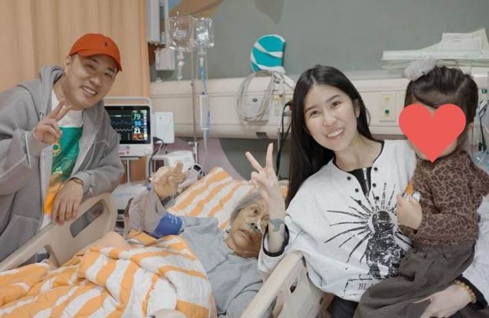 柔柔在社群上公開多張奶奶與曾孫女「小元寶」的互動照片,即便小元寶年紀尚小還不太懂事,奶奶看著她的眼神卻充滿寵愛與溫柔,畫面令人動容。其中一張照片是餘祥銓夫妻倆帶著女兒前往探視奶奶,當時奶奶雖躺在病床上插著鼻胃管,仍勉力打起精神對著鏡頭比出「耶」的手勢展露笑容。