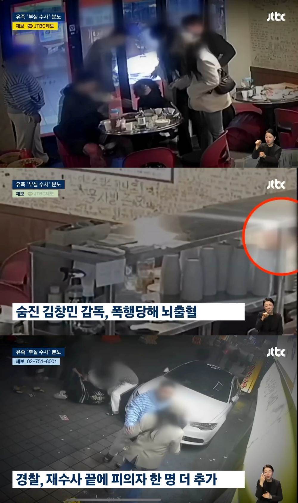 金昌民去年10月20日凌晨,因為兒子說想要吃豬排,兩人就一起前往京畿道九里市一家24小時營業的餐廳,過程中卻跟隔壁桌客人起口角,演變成肢體衝突。JTBC昨天公佈的畫面中,能看到金昌民被一群20多歲的男子逼到餐廳角落圍毆,金昌民的臉被正拳擊中後倒地,但加害者仍不放過他,不僅繼續痛毆,把金昌民到處拉出門外還到處拖行,一旁有女性試圖上前阻止卻被攔下,整件事情更讓人心痛的就是金昌民的兒子親眼目睹這一切。