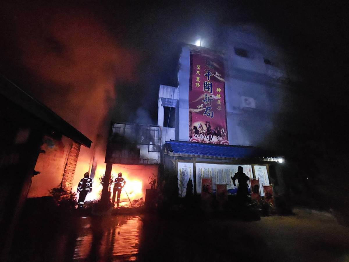 據彰化縣消防局的救援資訊,昨夜獲報後共出動32人、16車趕往灌救,據了解火災現場因為木造的建材易燃,導致整座建築迅速陷入火海。消防隊員趕抵立刻佈線射水,約半小時後成功壓制火勢,並持續進行殘火處理至今日清晨。警方初步勘查指出,起火點疑似在一樓神明廳,火警當下住警器有正常運作,目前不排除是電線走火引發意外,確切肇因與財損仍待進一步釐清。
