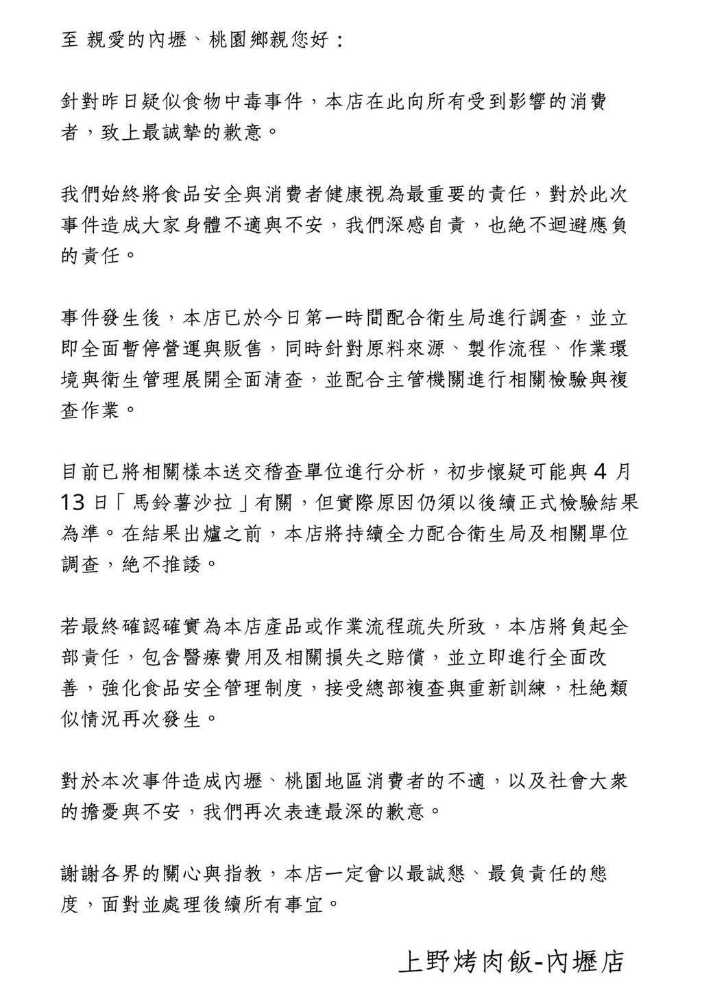 åºæ¹å¼·èª¿ï¼é£åè顧客å¥åº·æ¯é¦è¦è²¬ä»»ï¼å°æ¼æ¤æ¬¡äºä»¶é ææ¶è²»çä¸é©æ·±æèªè²¬ï¼ä¸¦è¡¨ç¤ºå°ååè¡çå±ç調æ¥ãäºä»¶ç¼çå¾ï¼åºå®¶å·²å³å»æ«åçéï¼ä¸¦å°åæä¾æºãè£½ä½æµç¨åè¡ç管çé²è¡æª¢æ¥ã