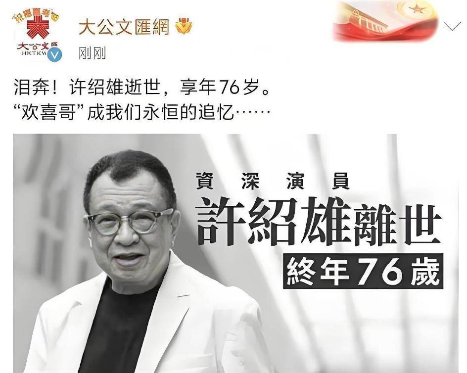10月28日,港圈傳來一個震驚的消息:許紹雄因病離世,享年76歲。