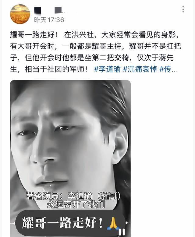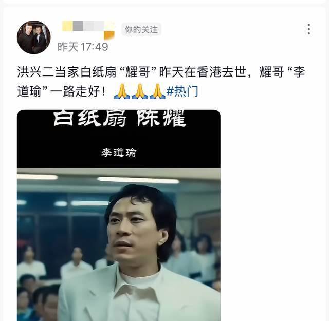 4月4號下午,多位來自業內的人士傳來悲痛訊息,知名港星李道瑜去世,享年58歲,這個名字聽起來可能陌生,但他在《古惑仔》中扮演的角色,相信諸多網友都耳熟能詳,沒錯,就是洪興的二把手「白紙扇」陳耀。
