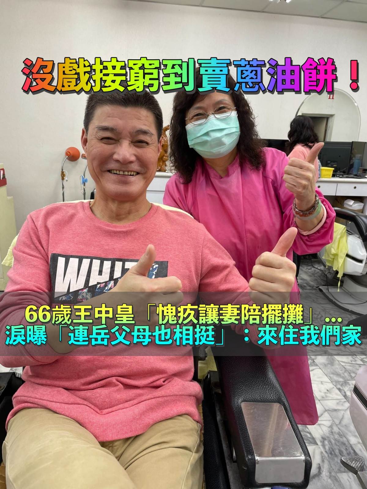 王中皇與妻子在路邊擺攤賣蔥油餅、長達半年的時間,在節目中提起當時的情形讓他數度哽咽,說到在擺攤時巧遇電視臺的導播與家人一起來買蔥油餅,心中百感交集,幸虧半年後終于接到戲約,好不容易脫離這段痛苦的日子,最感謝的人便是妻子與岳父岳母長久以來的支援,他也相當自責讓全家人跟著他一起受苦。