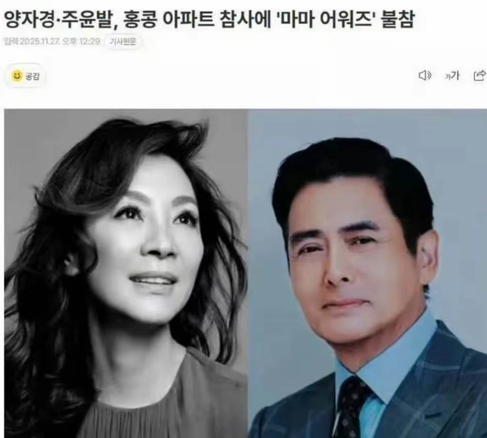 11月28日,韓國MAMA頒獎禮在中國香港舉辦,70歲的周潤發作為頒獎嘉賓也出席這這次活動,還哽咽的呼籲觀眾為在大埔火災中遇難者默哀