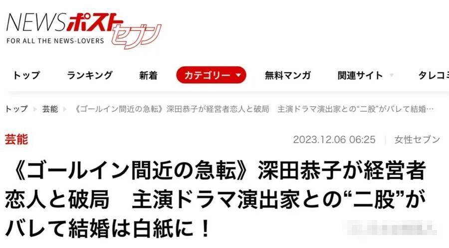 後來深田恭子與土豪杉本宏之從2018年開始交往,2023年5月還被媒體拍到拍到左手無名指戴著鉆戒,更帶著杉本宏之回父母家見家長,被傳出好事將近。沒想到同年便傳出她疑似出軌合作電視劇導演的消息,婚事就此告吹。