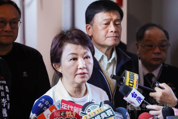 臺中市長盧秀燕(前)28日接受媒體聯訪,回應豐原區一處蛋雞場雞隻大量死亡問題,盧秀燕證實採檢結果為禽流感陽性。中央社記者趙麗妍攝 115年1月28日