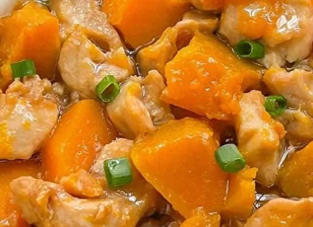準備食材:南瓜,雞腿肉,姜片,蔥段。